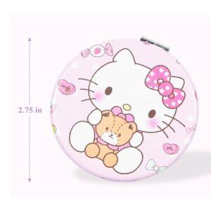 Stay cute and polished on the go with this Hello Kitty compact folding mirror, featuring an adorable teddy bear design and a two-sided mirror for quick touch-ups anytime. Its slim, portable size makes it perfect for your purse, makeup bag, or travel kit.