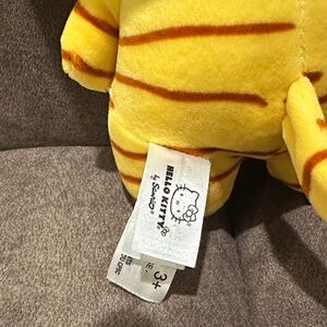 Charming Hello Kitty plush in yellow with brown stripes. Soft and huggable.