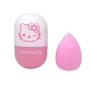 Cute Hello Kitty pill-shaped travel case with a pink blending sponge. Perfect for makeup on the go. NWT, limited edition collab.
