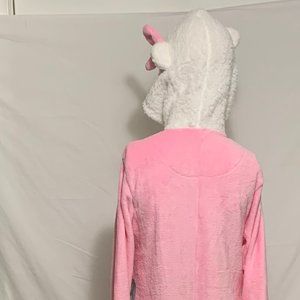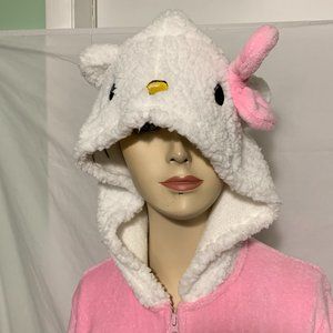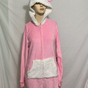 Hello Kitty Union Suit PJs Pajama Pocket Hooded 3D Bow Cosplay Costume Pink L