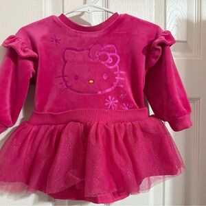 Long sleeve velour dress with tutu skirt Hello Kitty face on front Wore once to a birthday party Size 6-9 months Smoke free home