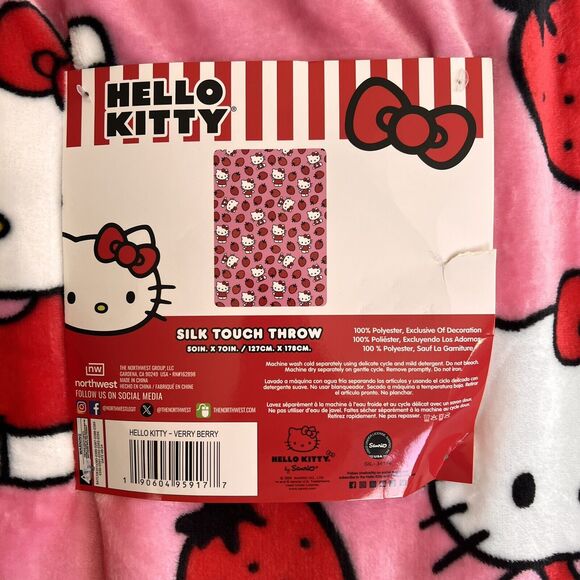 Hello Kitty Verry Berry Fleece Blanket 50”x70” Silk Touch Throw Sanrio Soft NWT