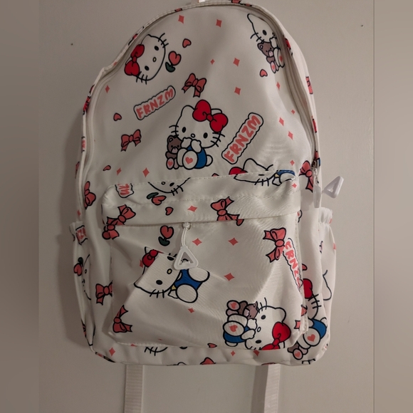 Cute Hello Kitty backpack with red and blue accents. Perfect for fans of the iconic character.