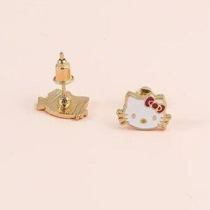Hello Kitty White Gold Tone Stud Earrings New