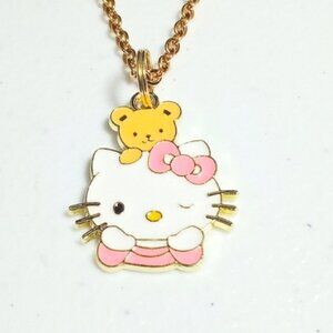 Hello Kitty White Pink Teddy Bear Gold Plated Pendant Necklace New