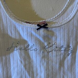 Stylish white ribbed tank with Hello Kitty design. Perfect for casual wear.