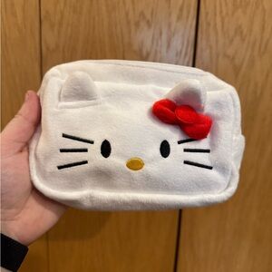 Adorable Hello Kitty plush pouch in white with a cute red bow. NWOT.