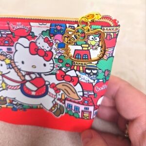 Cute Hello Kitty coin purse with colorful design. Features Hello Kitty riding a horse. Perfect for small essentials.