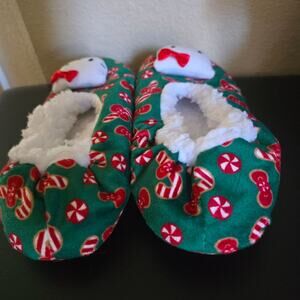 Hello Kitty Womens Holiday Fuzzy Babba Slipper Socks Green Candy Print Size 7-9.