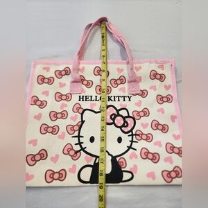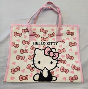 Hello Kitty Women's Pink Cream Canvas Bag Iconic Design Hand Travel Purse NWT