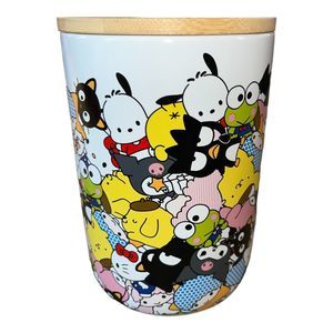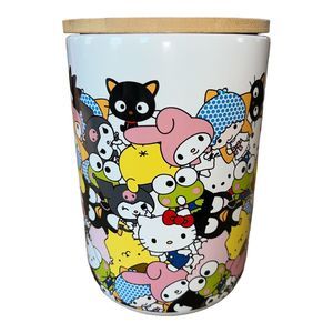 Hello Kitty and Friends Storage Cookie Jar Container Wooden Lid By Sanrio New