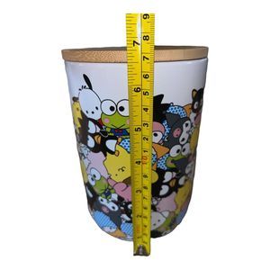 Keep your cookies fresh, or your makeup brushes together and organized with this adorable Hello Kitty and Friends Storage Jar Container. The cute and colorful design features Hello Kitty and her friends enjoying different food and kitchen-related activities. The wooden lid adds a touch of warmth and makes it easy to access your favorite treats. Measuring 8 inches in height and 4 inches in length and width, this cookie jar is the perfect addition to any kitchen or collection. It comes brand new with all original packaging and is a must-have for all Hello Kitty fans.