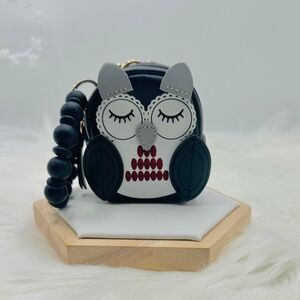 Features a cute Owl design small case that can house your coins, credit cards, or cash. Comes with a keychain and a silicone beaded bracelet that doubles as a wristlet. Measuring 3.2" x 3.9", it's compact and convenient.