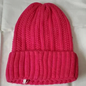 Pink beanie is only decorated on the front side