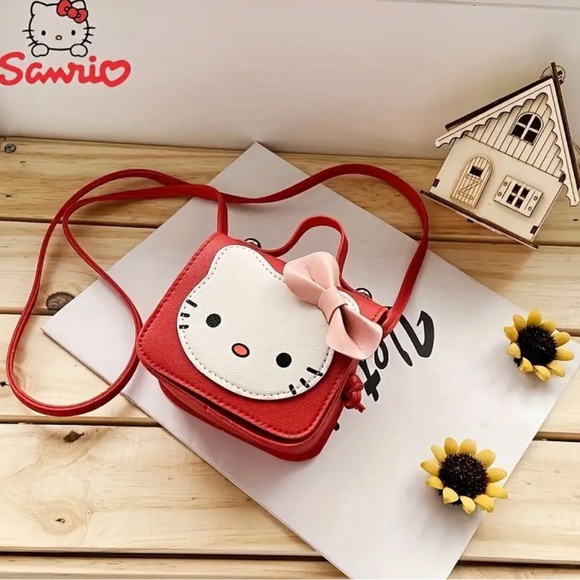 Adorable Sanrio crossbody bag featuring Hello Kitty. This red bag is perfect for fans of the iconic character. Stylish and fun for everyday use.