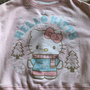 Cute Hello Kitty by Sanrio sweatshirt 3T, pink winter scene. Beige tan pants size 4 by Colette Lilly pull on elastic waist, pretend front pockets, real back pockets. (fits like a 3T) Pre-loved in good condition