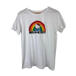 Hello Kitty by Sanrio Women's L White Rainbow Short Sleeve Crew Neck T-Shirt. Pre-owned in excellent condition, no rips, holes or stains noted.