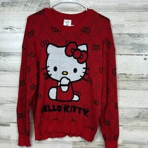 Hello Kitty by Sanrio Womens Sweater Size Medium Red Bow Pattern Long Sleeve