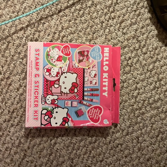 This is a suitcase full of coloring books, stickers, lunch boxes, a rare old scroll flag worth $40, phone cleaner, paper plates, laptop bag, puzzles, pencil case all inside the hello kitty suitcase. You get everything you see for $120