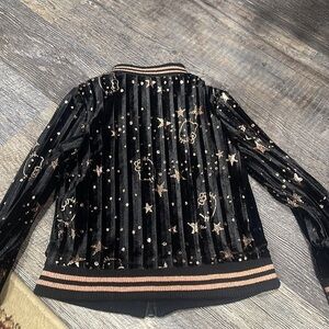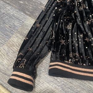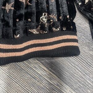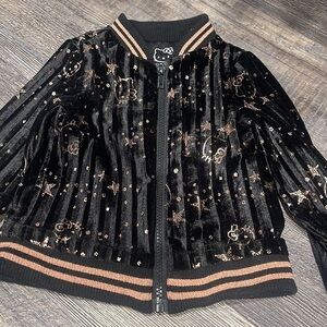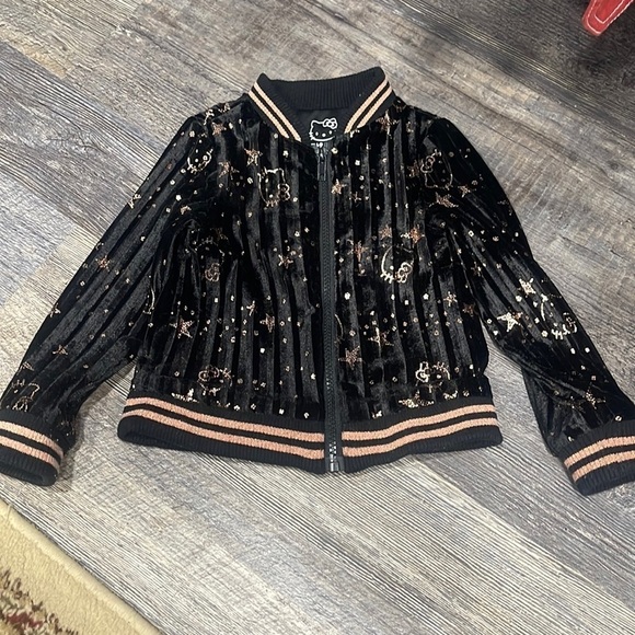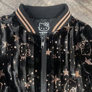 Lovely Hello Kitty with black sparkly stars and kitties.