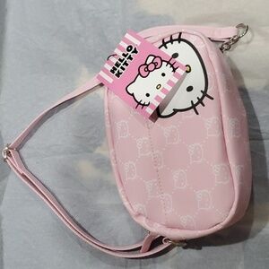 Hello Kitty pink canvas like hello kitty logo chainlink crossbody bag purse new