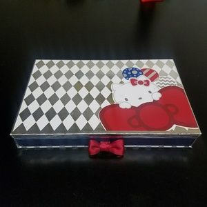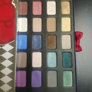 Hello Kitty 40th anniversary palette, beautiful packaging featuring pop-up scene under top cover, and a tray of 20 eyeshadows that pulls out with a red satin bow tab. The shadows are beautiful, some unusual pearls and shimmer formulas. Very gently used - tried out once, swatches several times.