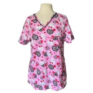 Hello Kitty scrub tunic double pocket V neck black lace trim