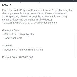 Hello Kitty x Forever 21 Rhinestone Kuromi Graphic Sweatshirt