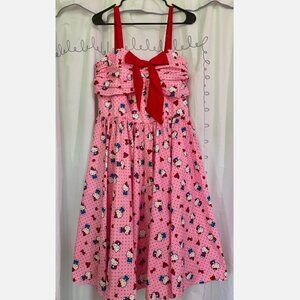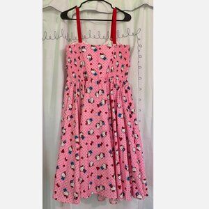 Hello Kitty x Unique Vintage Pink Polka Dot Dress 1X Retro Bow Fit & Flare Flaw