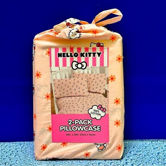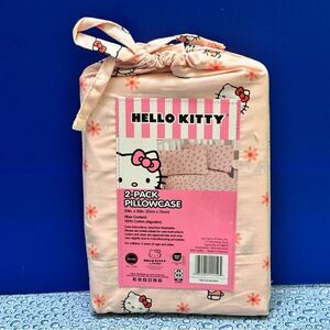 Hello Kitty 2 - Pack pillowcase 100% cotton pink cake light /white Hello Kitty flowers 20” x 30” New