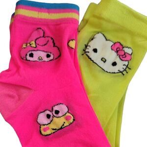 Hello Kitty And Friends 2 Pairs Neon Nylon Mid Crew Capri Socks NWT