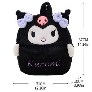 Hello Kitty Backpack Kuromi Embroidered Plush Furry Black 15" Book Bag Sanrio