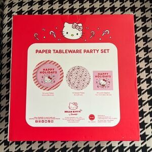 This listing is for a NWT/Unopened Hello Kitty Christmas Paper Tableware Party Set. The set includes 16 lunch plates, 16 dessert plates, and 40 lunch napkins.