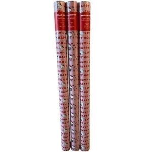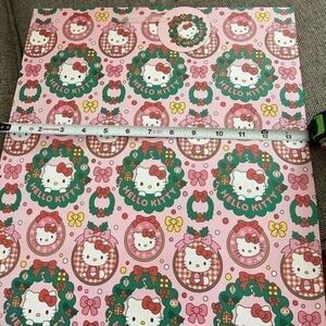 This listing is for a NWT's Hello Kitty Happy Holiday's Pink Wrapping Paper and Gift Bag set. The set contains three rolls of wrapping paper with two large gift bags. Each roll of the wrapping paper measures 30 square feet, and each gift bag measures 15x13.