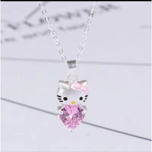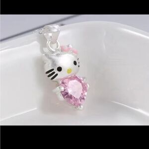 Hello Kitty Silver Heart Gem Pendant Necklace