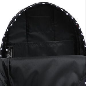 Elevate your travel experience with the Hello Kitty Head and Polka Dots AOP Travel Backpack on Black Ground. This backpack is not only stylish but also officially licensed, ensuring its authenticity and quality. It is designed with convenience in mind, featuring a laptop compartment that can accommodate laptops up to 15 inches, making it ideal for both work and travel. The back panel includes a trolley pass-through, allowing you to easily attach it to luggage handles during your journeys. Efficient organization is a key feature of this backpack, with a side pocket and dedicated laptop compartment ensuring you can keep your belongings in order. Crafted from durable polyester, this backpack can withstand the demands of everyday use. Please note that this item is not intended for use by children aged 12 years and below. Upgrade your travel gear with the charm of Hello Kitty and the functionality you need for your adventures.