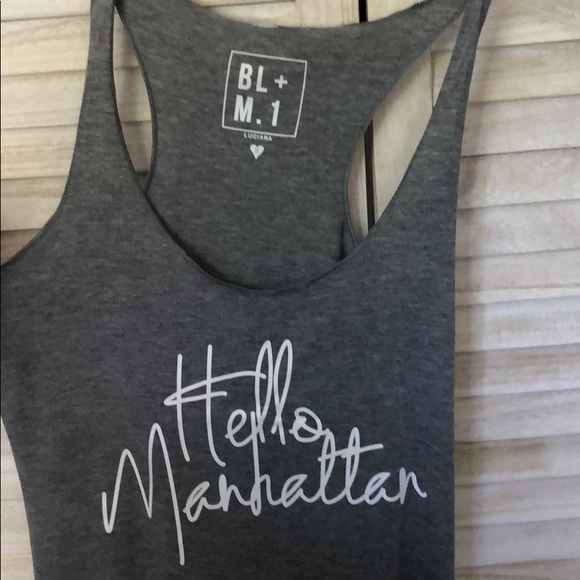By Luciana grey Racerback slogan tank. Hello Manhattan phrase on super soft wearable tank. New but no tags.