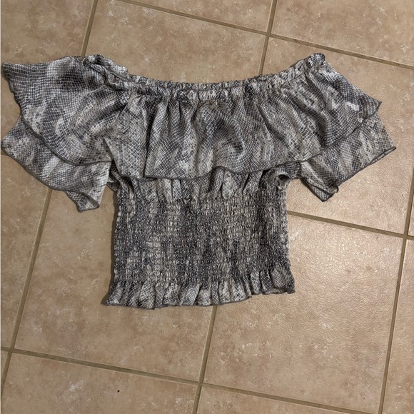 Hello Miss Off-Shoulder Ruffle Blouse - Gray