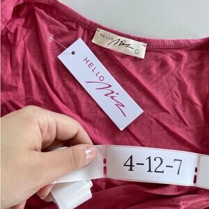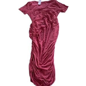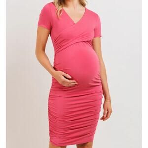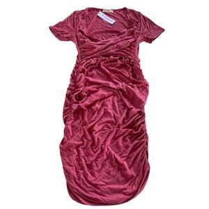 Hello Miz Dress Womens Large Maternity Pink Midi Stretchy V Neck Wrap Top Ruched