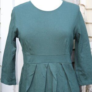Hello Miz Hunter Green Knit Pleated Wide Waistband 3/4 Sleeve Maternity Dress LG