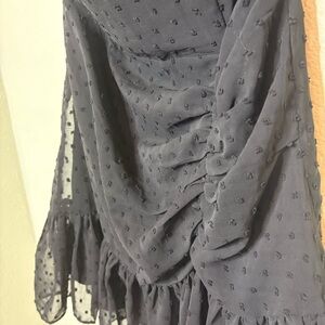Chic black dress with delicate ruffles. Ideal for evening wear.