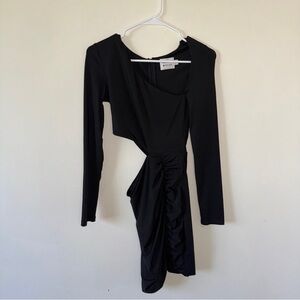 Chic black mini dress. One-shoulder design. Stylish cut-out detail. Perfect for a night out.
