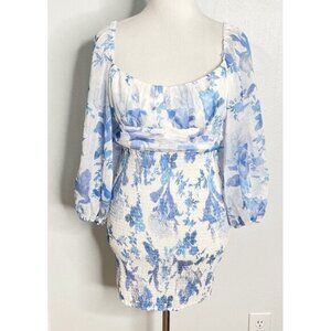 Hello Molly Calendar Girl Blue White Floral Smocked Mini Dress Size 8