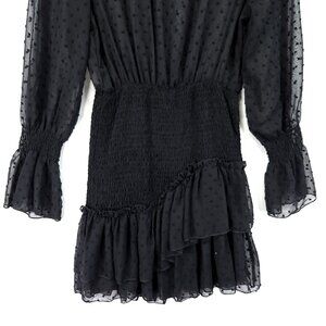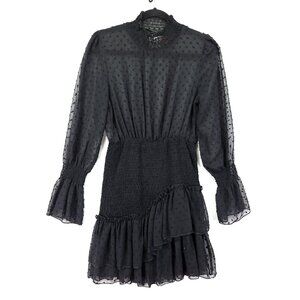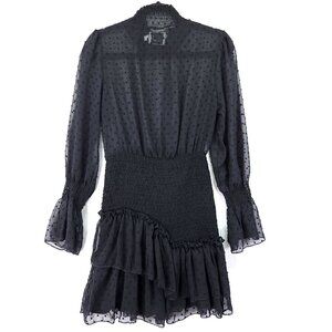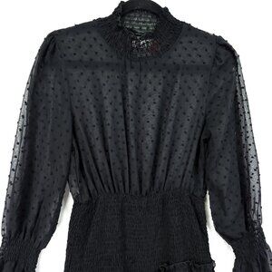 Hello Molly Don’t Take It Personal Black Sheer Smocked Mock Neck Dress Large