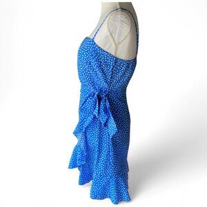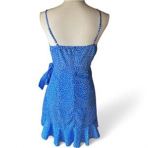 Hello Molly Down To Georgia Blue White Polka Dot Ruffle Wrap Preppy Mini Dress M