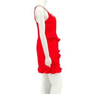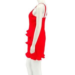 Hello Molly Dress Womens 6 Medium Red Through The Dark Mini Ruffle Tiered Party Club Square Neck Adjustable Straps Back Zipper No Stretch Sexy Holiday