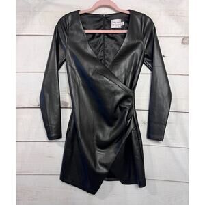 Hello Molly Faux Black Leather Dress Size 2 Long Sleeves EUC