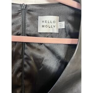 The Hello Molly Faux Black Leather Dress in size 2 features long sleeves, a zip closure, and is perfect for a party or cocktail occasion. Made of polyester, this short mini dress is in excellent used condition and must be hand washed. With a solid black color and a stylish design, this dress is ideal for the summer and spring seasons, adding a touch of elegance to any outfit. Made by the brand Hello Molly, this dress is a chic and trendy choice for women looking to make a statement at their next event.