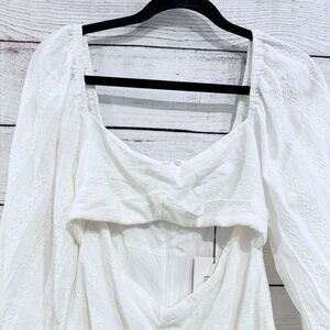 Hello Molly Feeling Smitten Dress White Puff Sleeve Cutout Mini Romantic Size XL