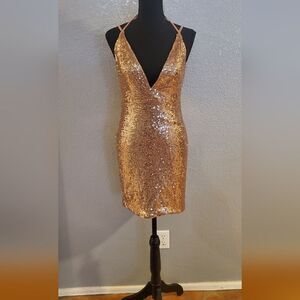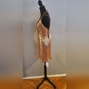 Hello Molly Glitter Gypsy Mini Dress Bronze Sequin Party Dress – Women’s